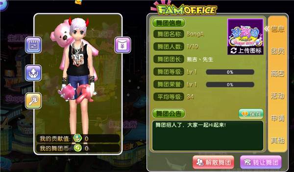 每日签到和对舞团做贡献是提升舞团等级和荣誉的主要途径。舞团商城中不仅有平时使用的合成、染色、进化材料,更是有稀有的个性展示物品喔!