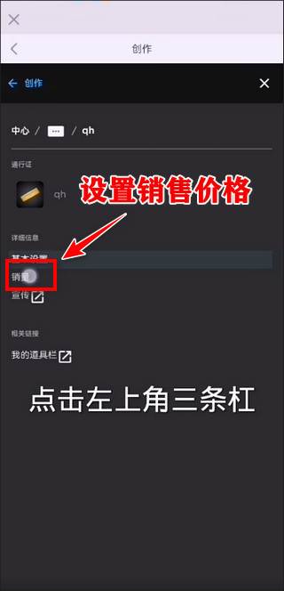 11、通行证创建成功后还得上架销售才行,注意首页如果显示“下架”而不是罗币的价格就要点进去设置一下了