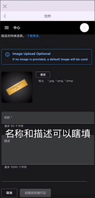 10、通行证的图片、名称、描述都可以随便,如果有心思弄得话也可以,反正要写点什么才能创建成功