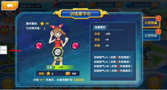 2、训练师可以在训练师中心,进行属性上的锻炼;从而获得更强的属性