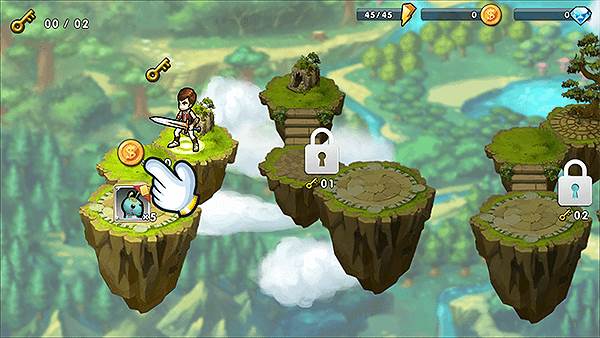 9、开始第二章啦!好了,看不到第一关奇怪的箱子了,这下队伍满啦!注意步数哦~怪物家族有三种类型区分:分为近战的肉盾(血多皮厚)与战士(攻击高);远程的射手(远程攻击皮薄),在以后怪物很多的时候如何搭配最好呢?看自己喜好的啦~建议还是要三种类型各上一只~