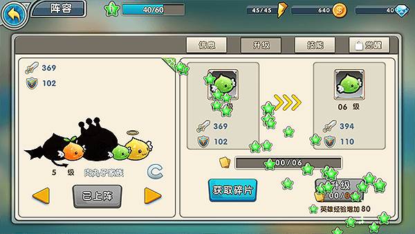 11、哎呀~捡了好多碎片,给肉丸子升升级先~怪物家族的变强,可以通过升级、学习技能、升级技能来提升,养成后可以获得主角经验哟~