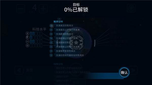 4、右上角是游戏的成就系统,里面有各式各样interesting的成就。有些可以使用任何核势力完成,有些则是专属成就,就如上文提到的一样。中间偏下的一个按钮则是进行下一步,玩家选择的自己心仪的核势力之后,便可以点击它。