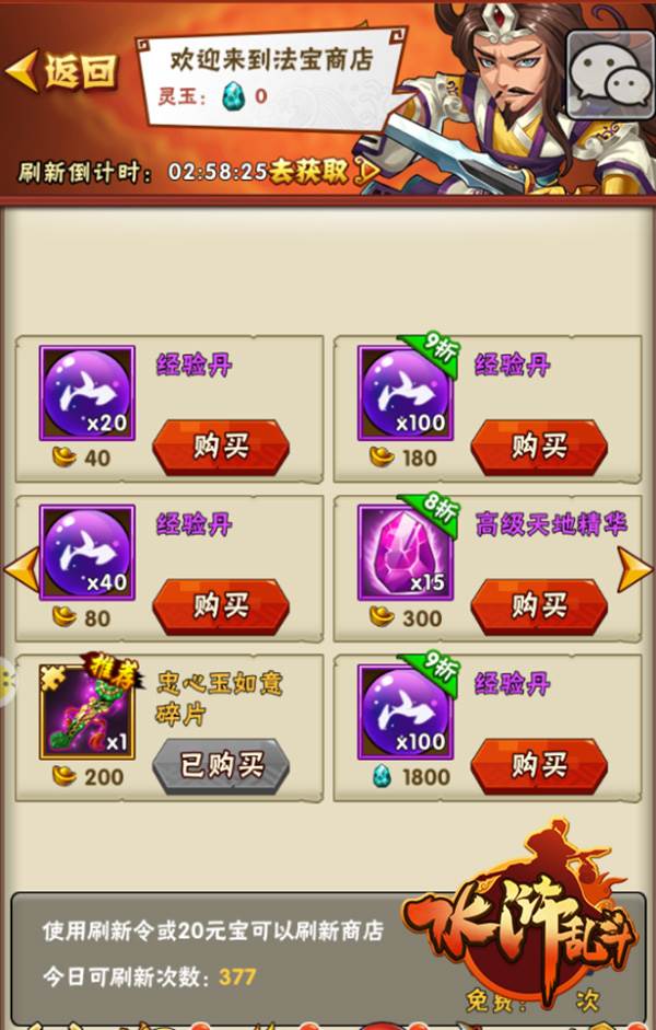 当然,我们也可使用刷新令或者元宝对商店进行刷新,以便购买到心仪的道具!