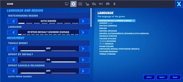 3、第二个选择选择中文,再点击右下角最左边的应用即可切换为中文语言。